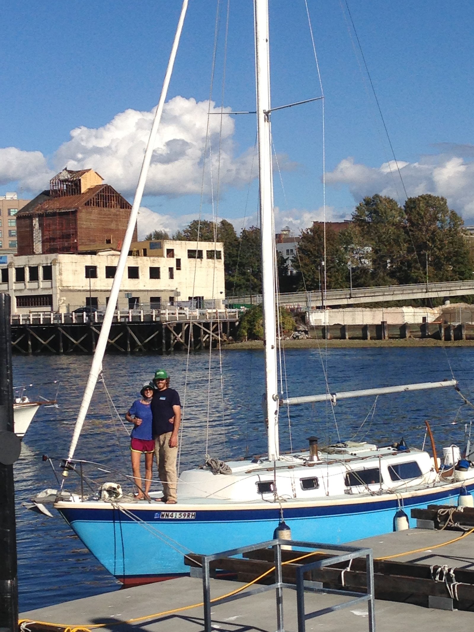 Me, Chris, and S/V Astrologer in Bellingham, Washington in September 2016. This photo was taken about an hour after Astrologer was crane lifted from the boatyard into the water. Hence, no mainsail.