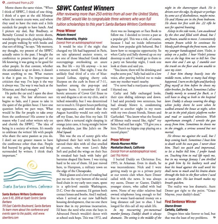 Prose Winner:Ā Wanda Maureen Miller.Ā Manhattan Beach, CA