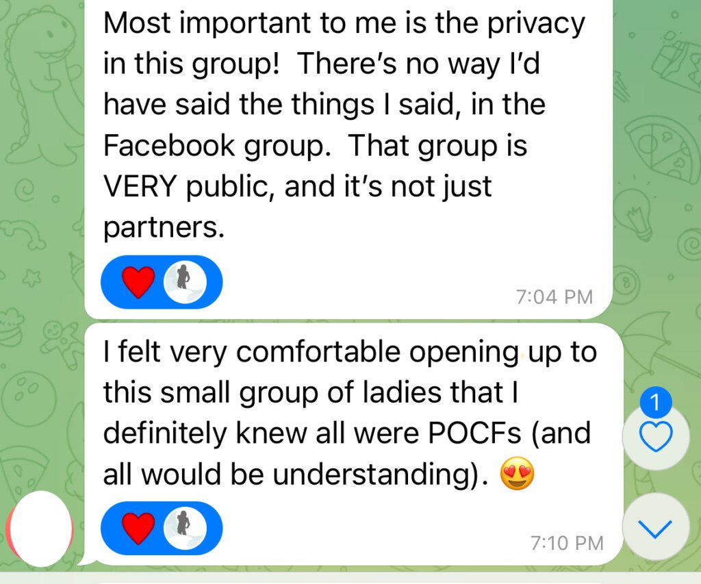 This is why we created the POCF Private Chat: to give you a safe place to land.
